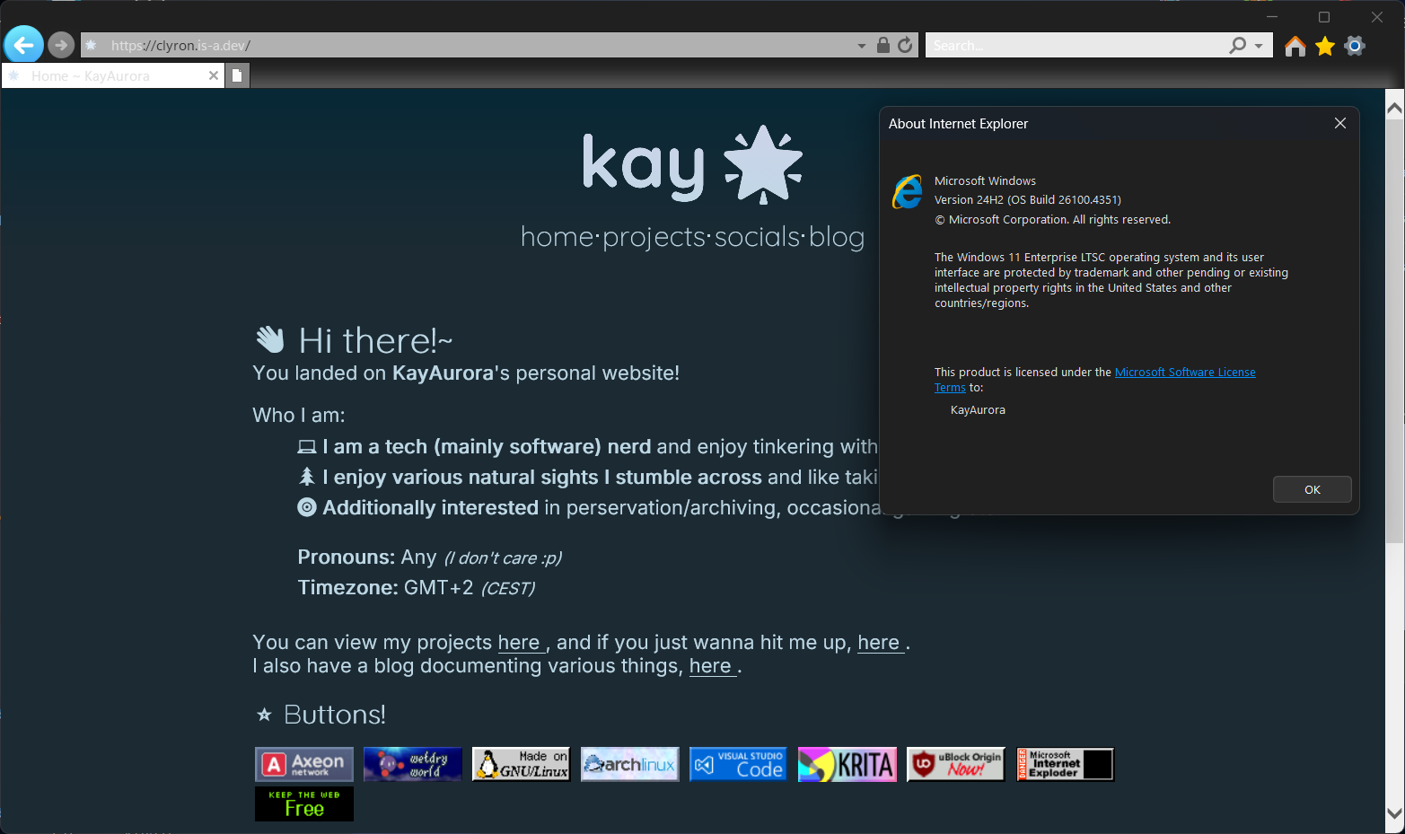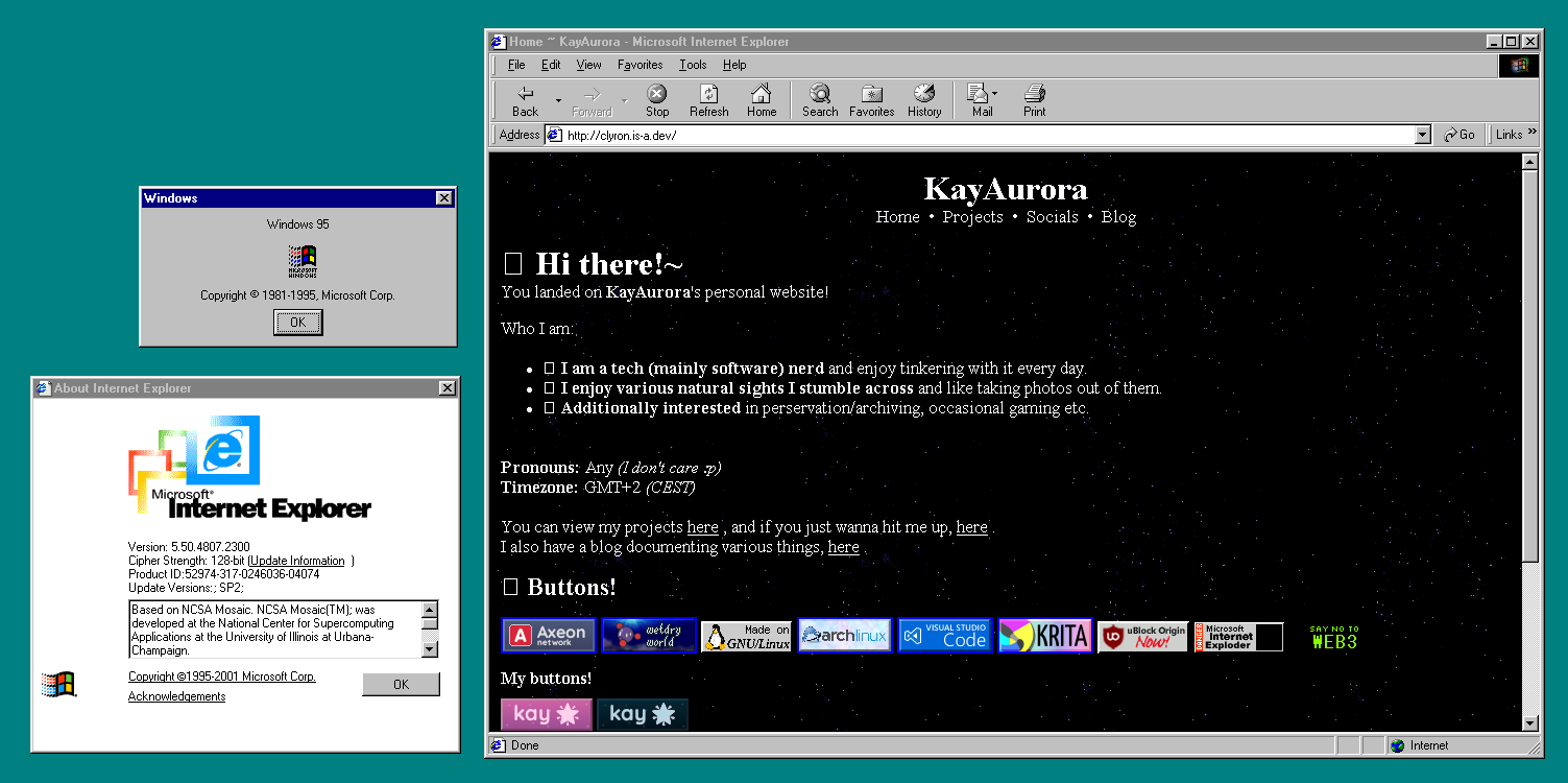 There are several issues that still need to be addressed like the whole “click to copy 88x31 HTML code to clipboard thing” not working or the footer and webrings not being properly centered (which can be attributed to IE11’s flexbox support being pretty “ehhy”)